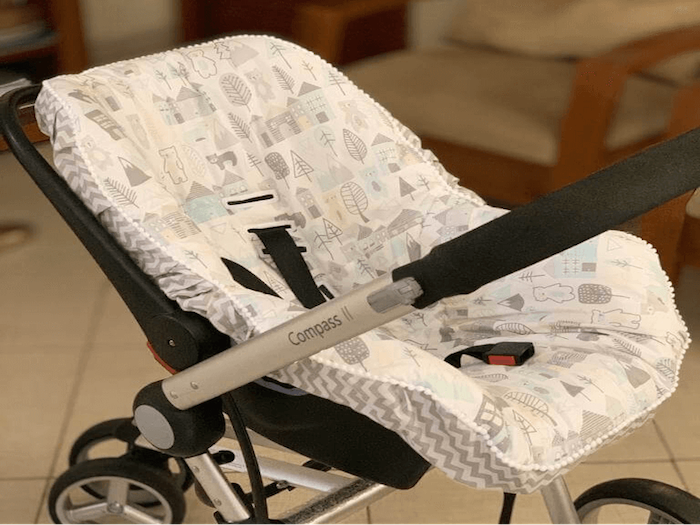 O protetor é confeccionado em tecido fustão casinha de abelha, em 100% algodão, decorado com bordado computadorizado, bordado inglês também 100% algodão, e é feito de forma padrão, que se adapta facilmente aos bebes conforto do mercado. Sempre feito em tecido branco.
